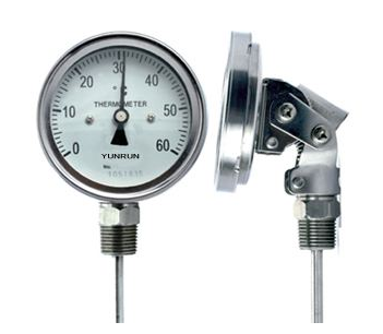 可調角雙金屬溫度計(萬向型雙金屬溫度計)是在 WSS 系列角型 , 直型的基礎上改進的產品 , 可實現儀表表盤與檢測元件軸線之間的角度從 0 度到 90 度范圍的調節。