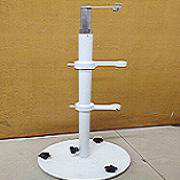 在裝有水平調(diào)節(jié)螺絲的在足座上,豎直裝一套筒,套筒頂端安裝帶有刻度的游標(biāo),筒內(nèi)插入刻有毫米刻度尺的鋼管,利用旋扭通過里面的滑輪,鏈條可以調(diào)節(jié)刻度鋼管在套筒中升降,從而可以讀出彈簧長度的變化。
