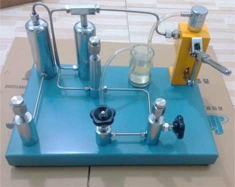 目前我公司生產的壓力表氧氣表兩用校驗器屬于第三代革新產品,在壓力穩定性和輕便性上有了質的飛躍。壓力表氧氣表兩用校驗器內置二級油水隔離裝置,可以方便的把油壓轉換成水壓,在計量室可以完全滿足一臺校驗器既可檢定禁油表又可以檢定一般壓力表。